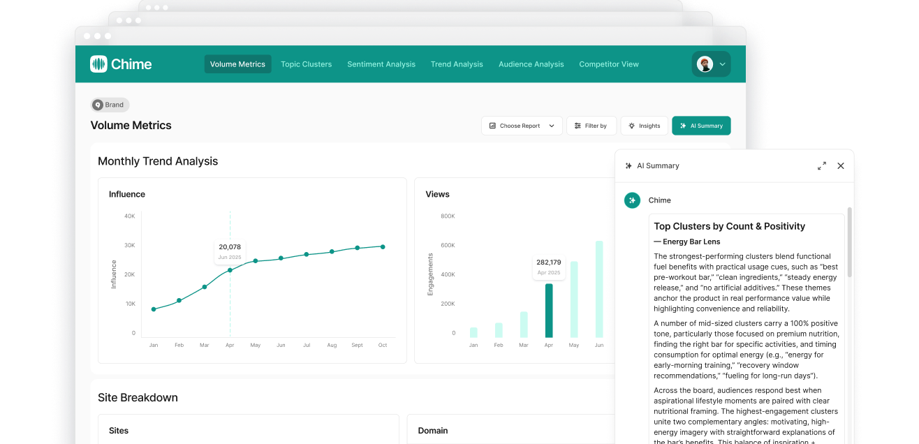 Chime surfaces human insights from audience conversations, connecting what people feel to who drives the conversation.